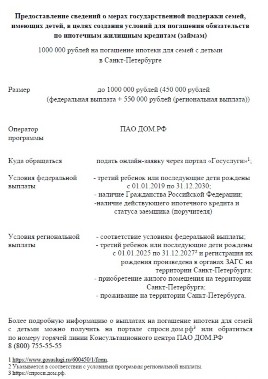 Предоставление сведений о мерах государственной поддержки семей, имеющих детей, в целях создания условий для погашения обязательств по ипотечным жилищным кредитам (займам)