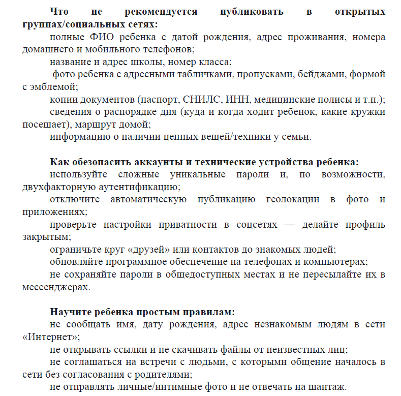 Уважаемые родители, в последнее время возросло количество преступлений, связанных с использованием персональных данных несовершеннолетних (мошенничество, шантаж, вербовка, оформление документов на имя ребенка и другие). Просим вас внимательно отнестись к вопросам приватности и безопасности.